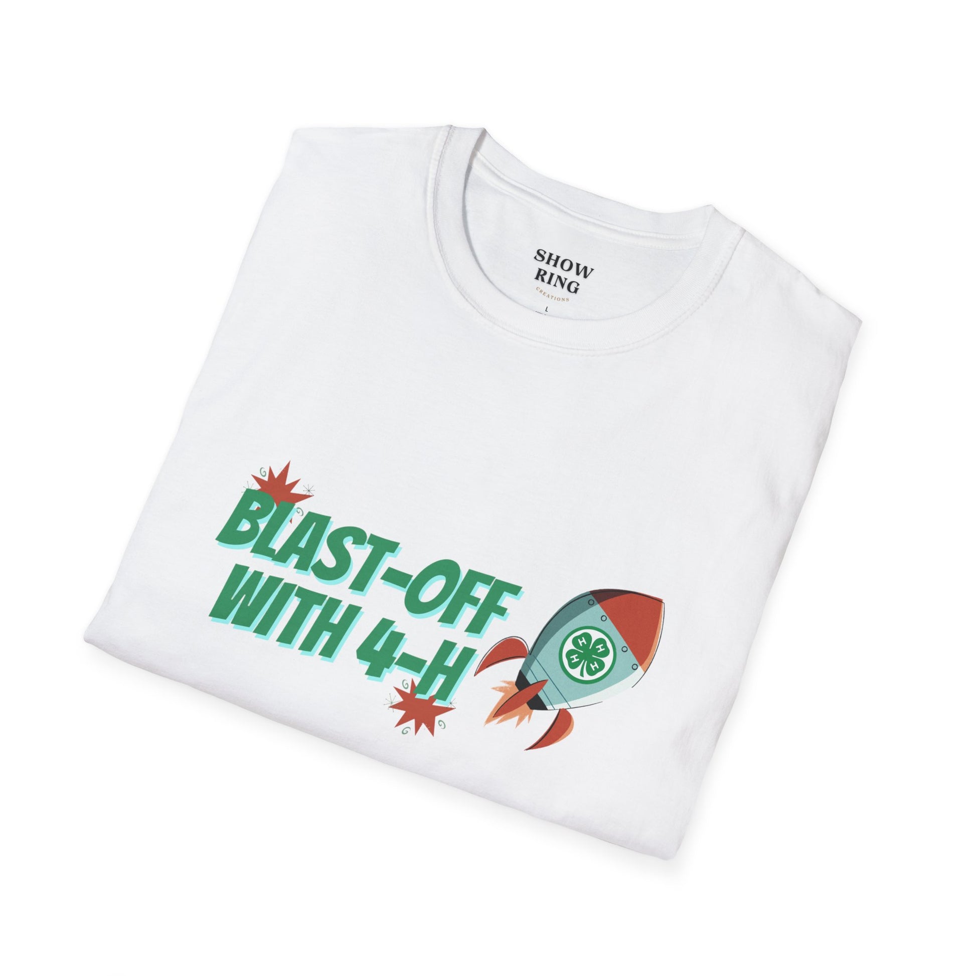 Adult, Blast-Off With 4-H Unisex Softstyle T-Shirt, Space Theme Apparel, Rocket Design Tee