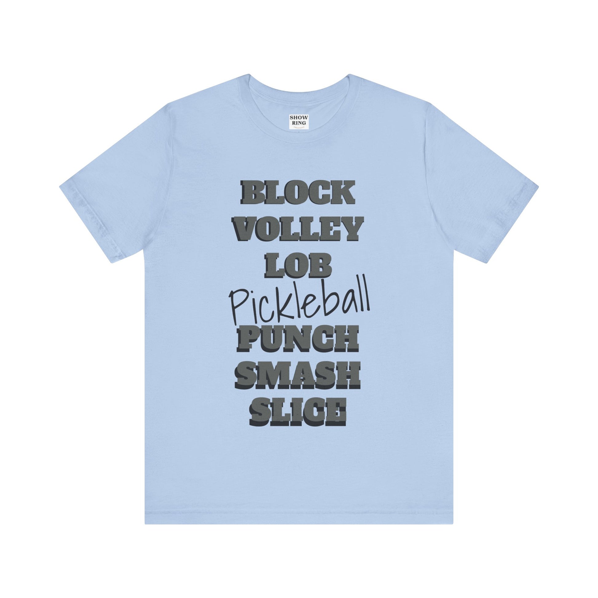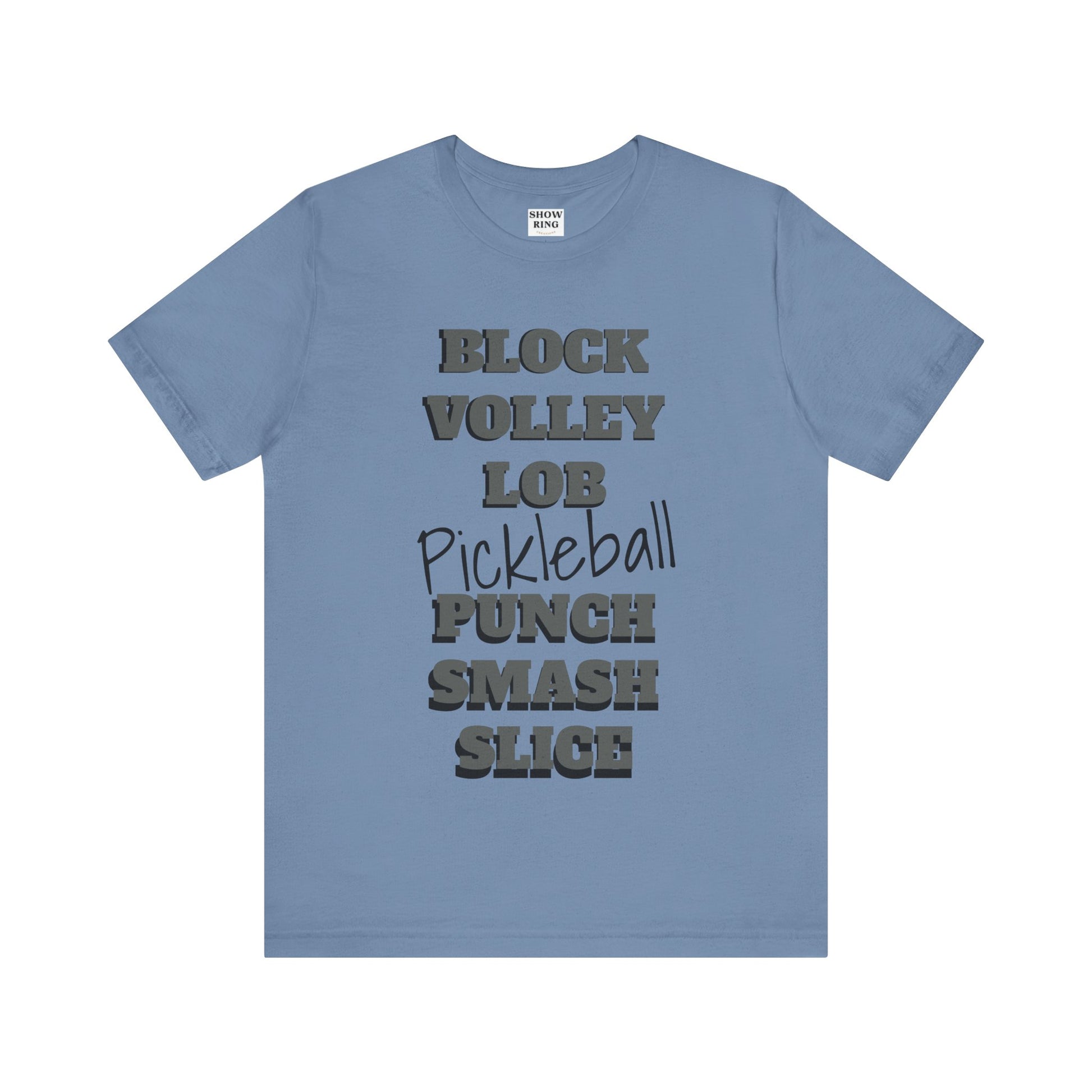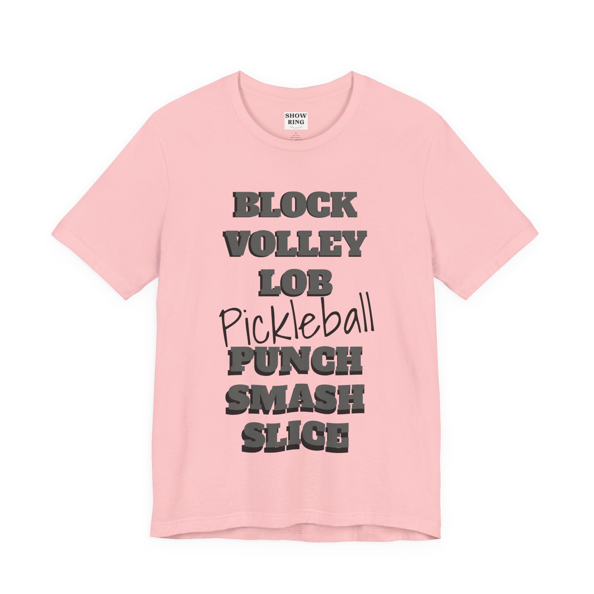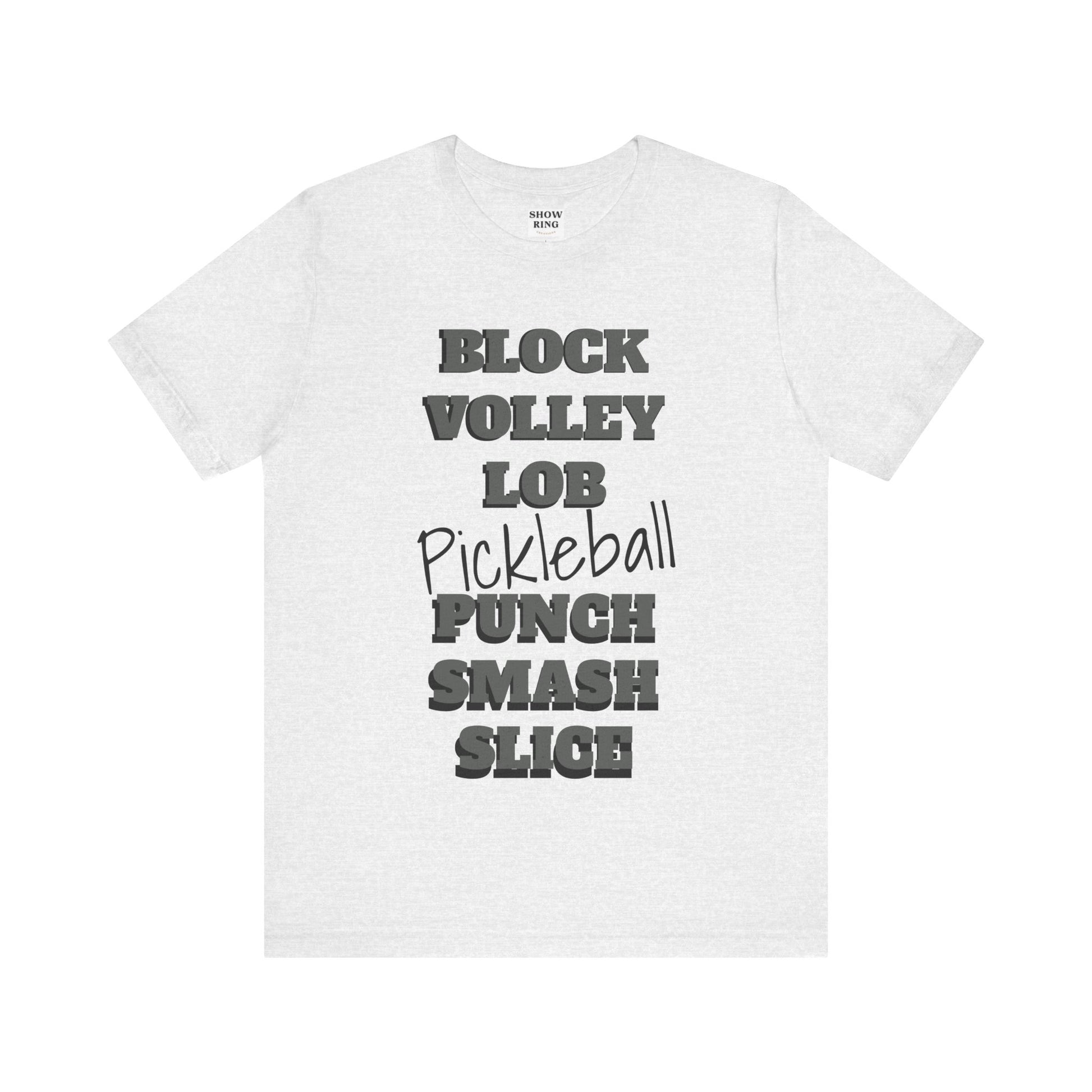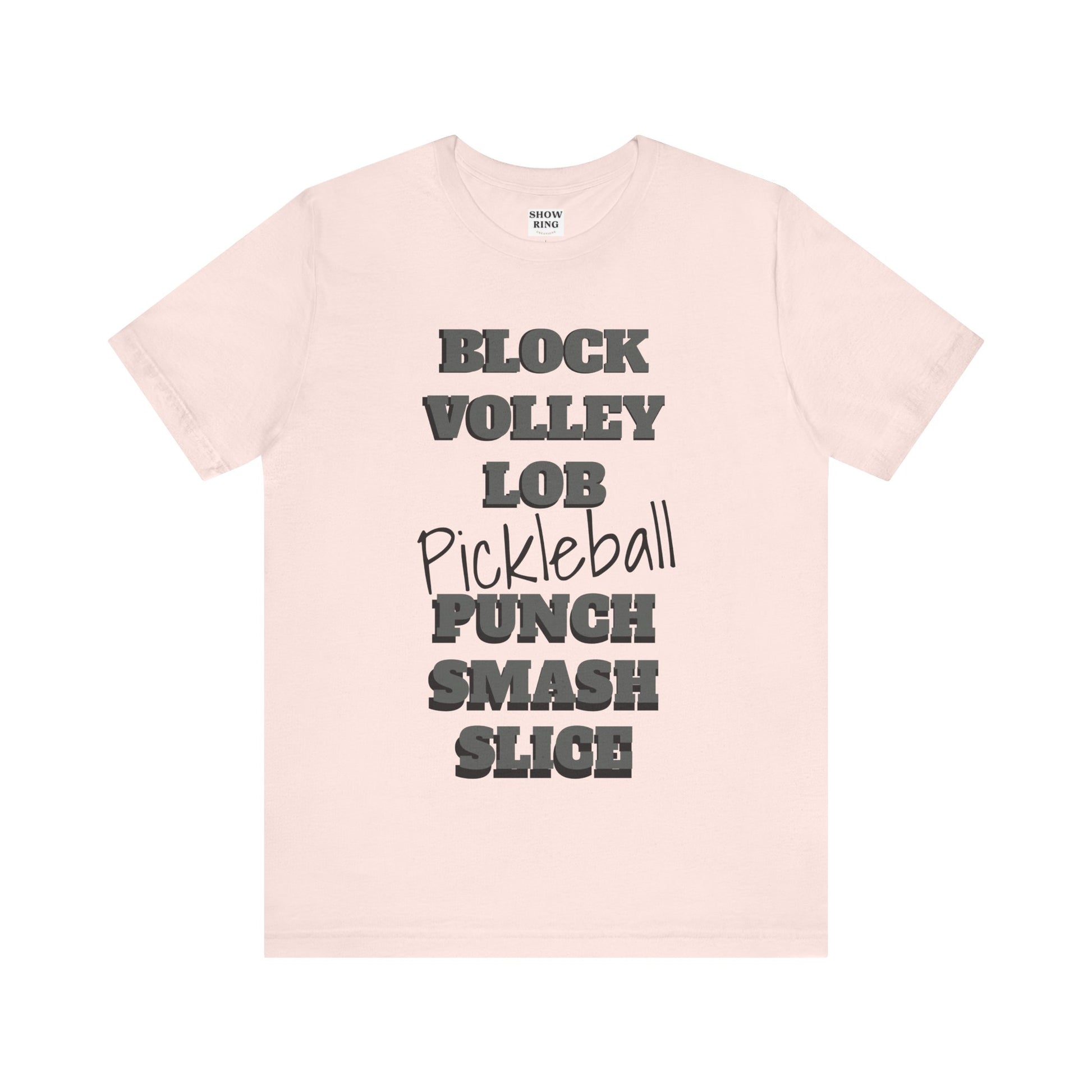 Pickleball Vibes Tee, For Players Who Live the Game, Featuring Bold Words Block, Volley, Lob, Punch, Smash, Spike