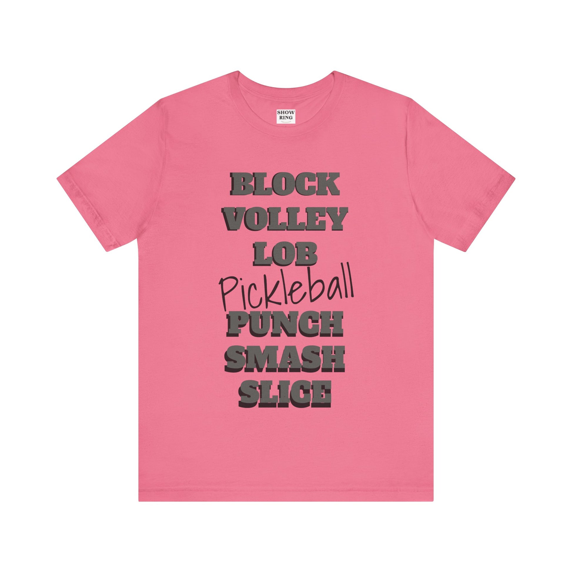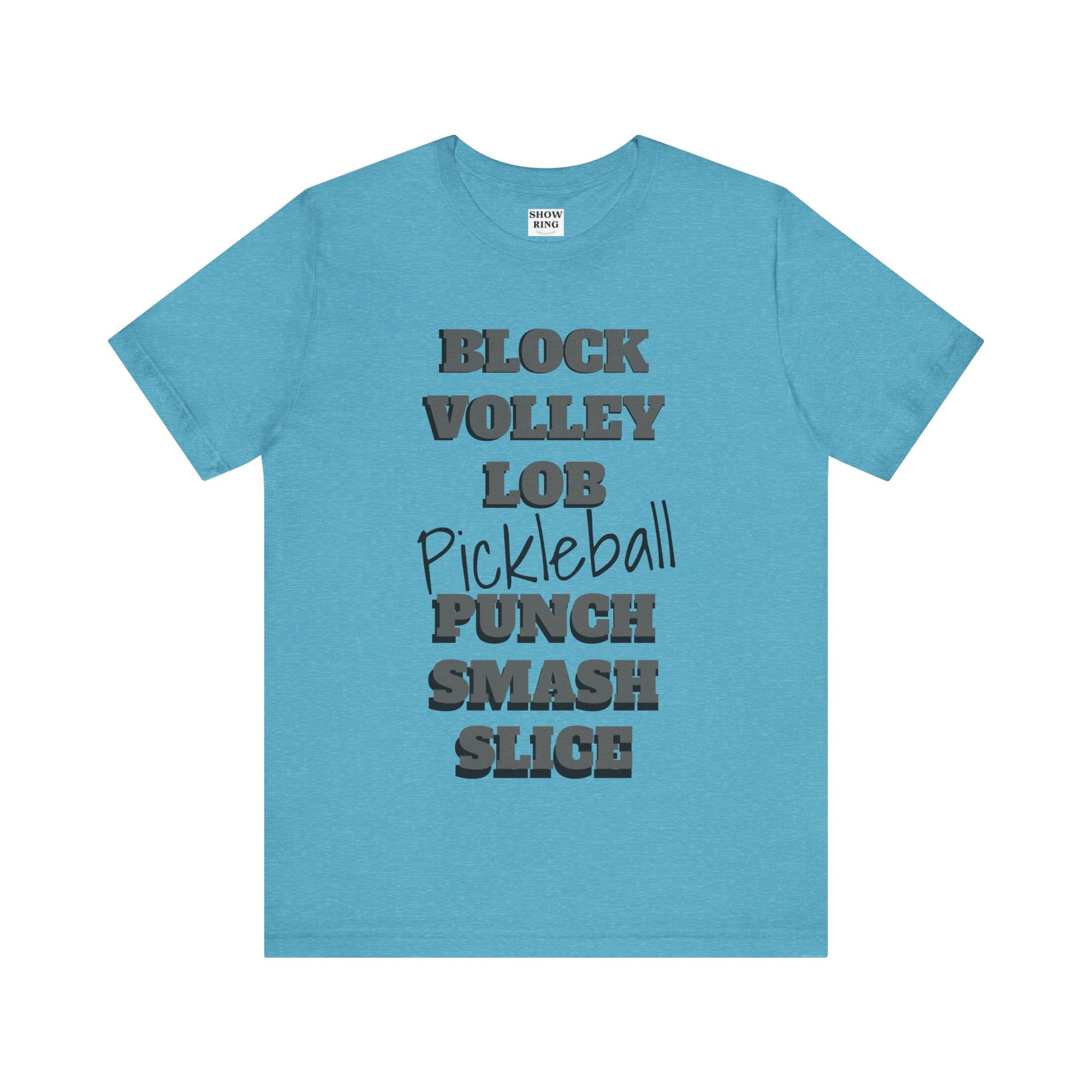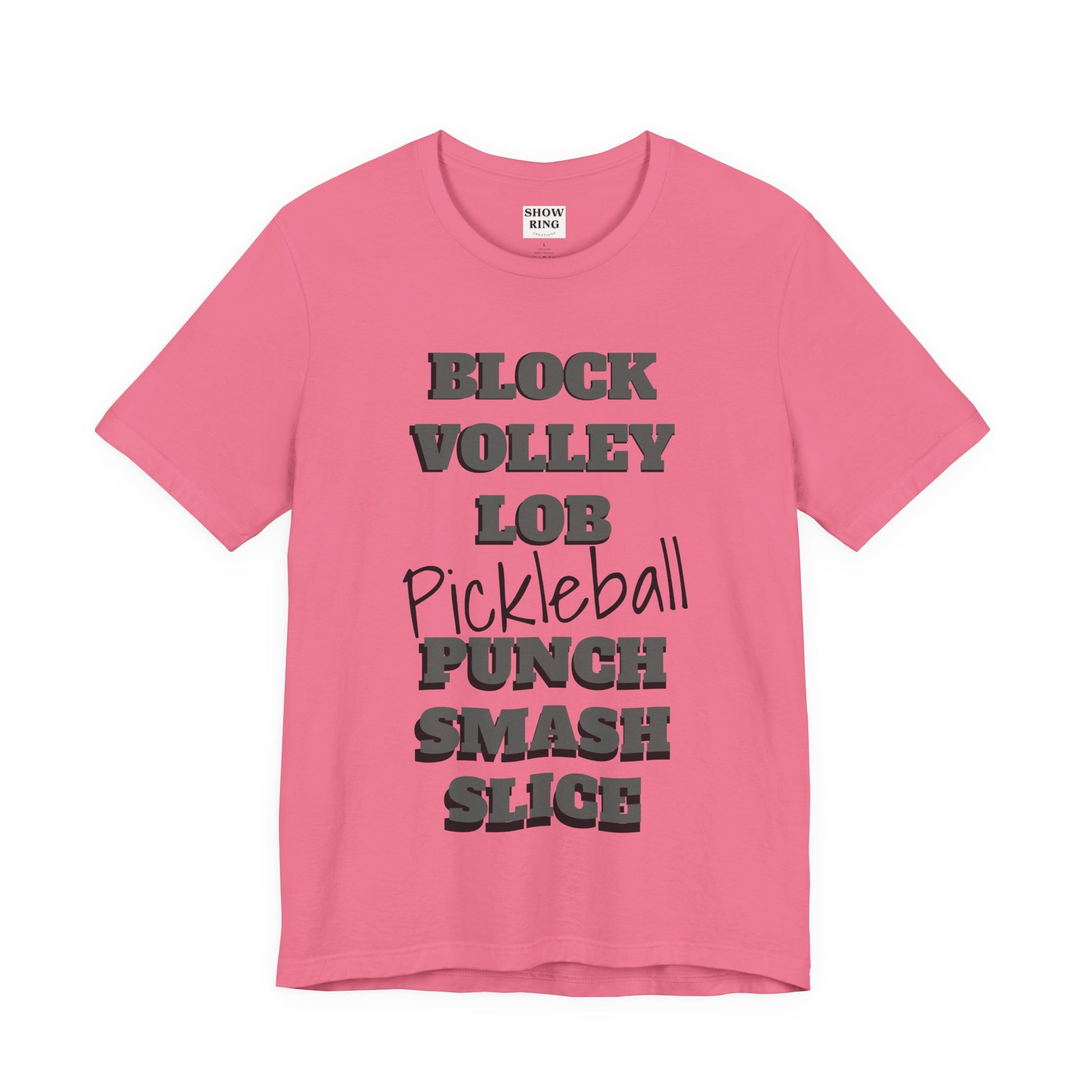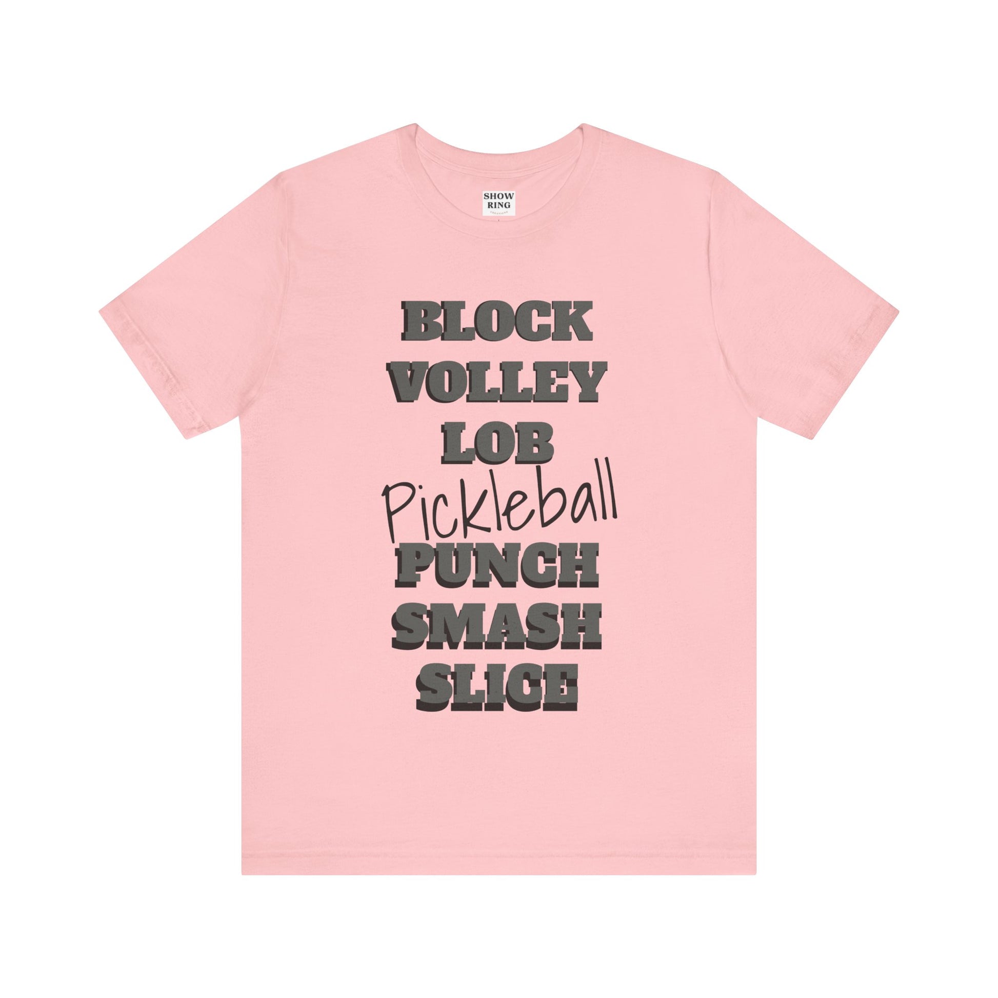Pickleball Vibes Tee, For Players Who Live the Game, Featuring Bold Words Block, Volley, Lob, Punch, Smash, Spike