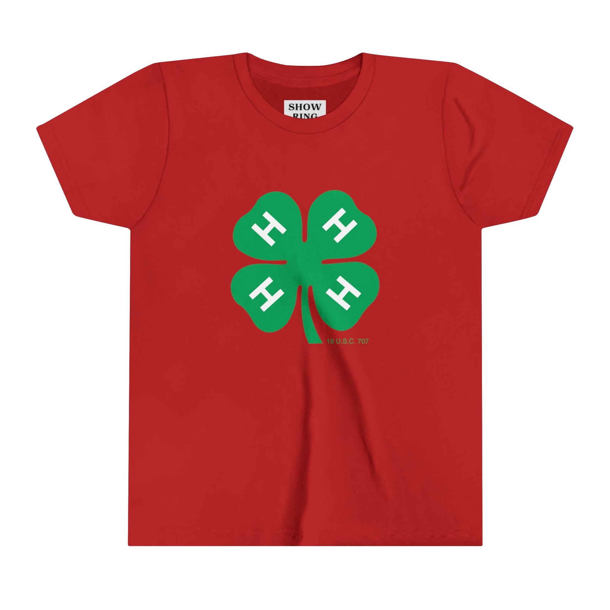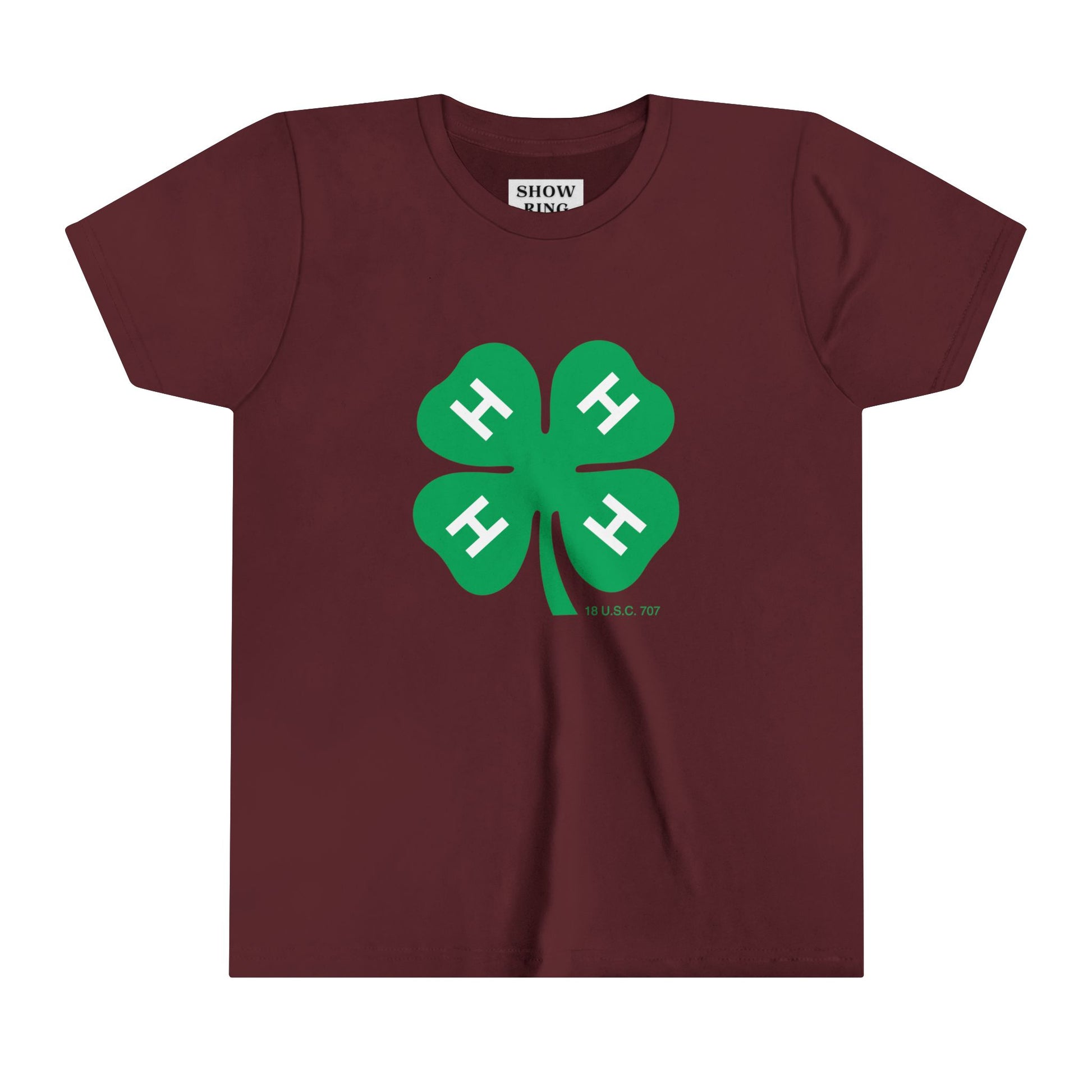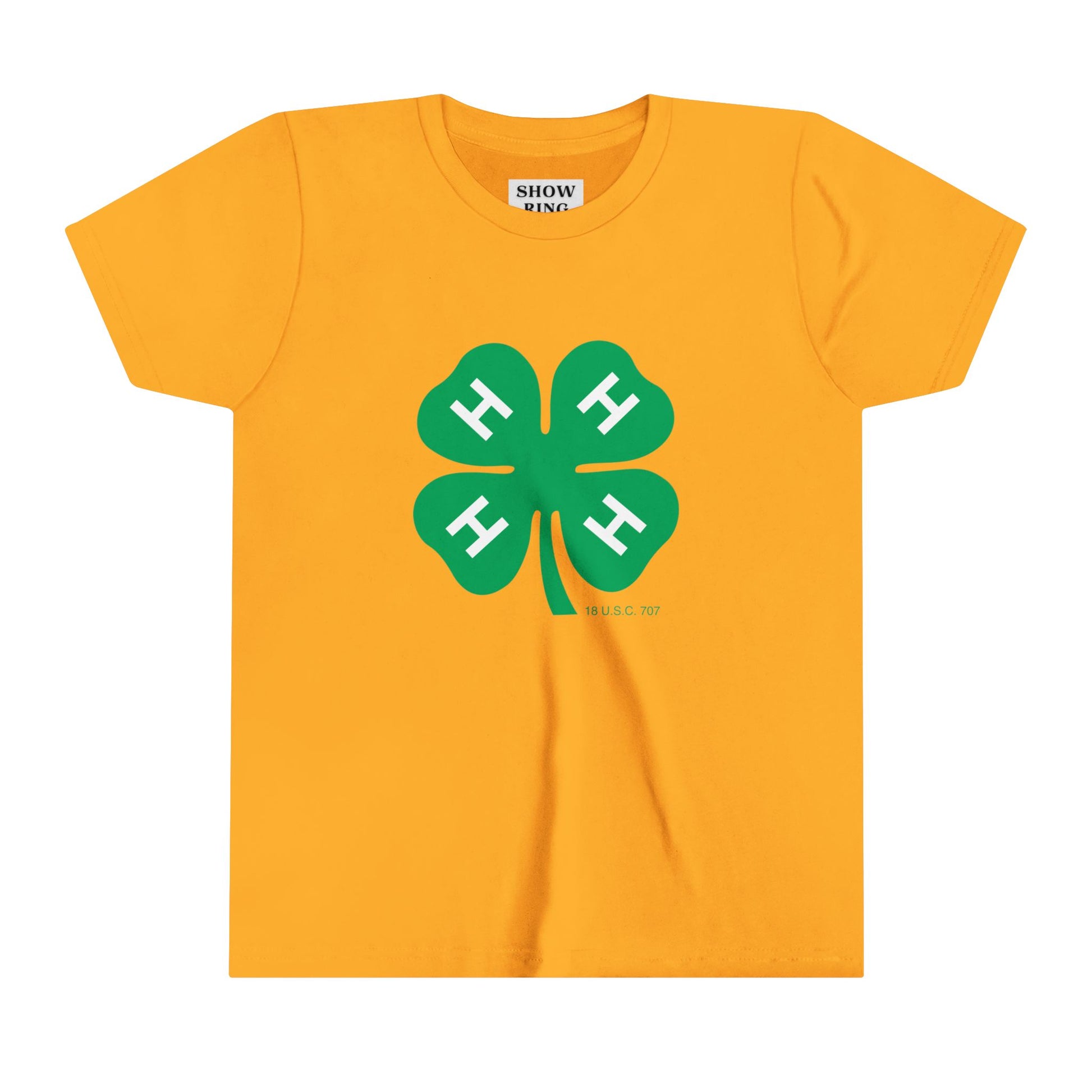 This youth short-sleeve tee is perfect for 4-H members who want to stay comfy while showing off their pride in style! Made with super-soft, airlume-combed, ring-spun cotton, this lightweight shirt keeps you cool and cozy all day, whether you're working on a project or just hanging out. With side seams to keep its shape, ribbed elastic collar, and extra shoulder tape for durability, this tee is built to last through all your 4-H adventures.
